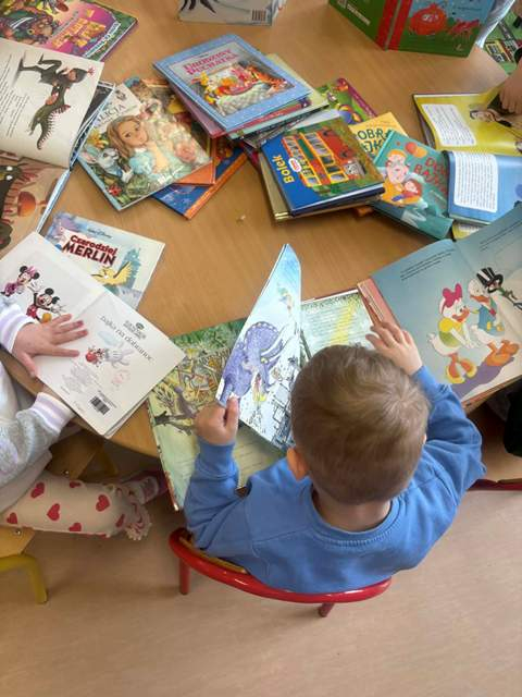 Z okazji „Dnia Książki dla Dzieci” odwiedziły nas „Żyrafy” z Wyspy Malucha. Celem tego dnia jest zwrócenie uwagi na rolę książek w rozwoju emocjonalnym i intelektualnym dziecka. Głośne czytanie buduje więzi, rozwija wyobraźnię i ułatwia naukę. Zbliża się Wielkanoc, więc przedszkolaki wysłuchały opowiadania Renaty Piątkowskiej „Śmigus-dyngus”. Dowiedziały się z niego skąd pochodzi nazwa lanego poniedziałku i jak dawniej ten dzień świętowano. Dokańczały ozdabiać pisankę a potem ja kolorowały. Nie mogło też w tym dniu zabraknąć oglądania książeczek.