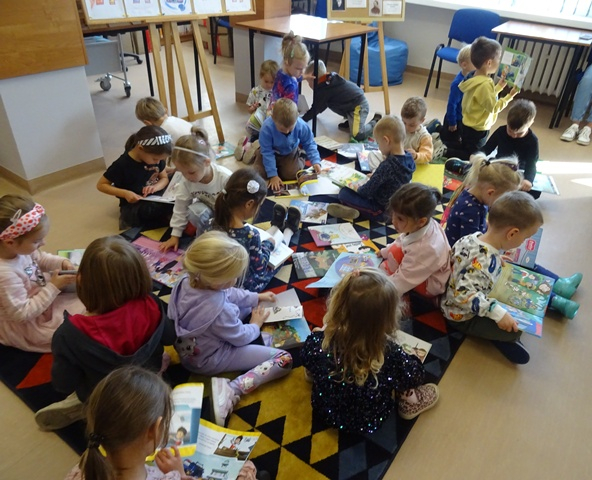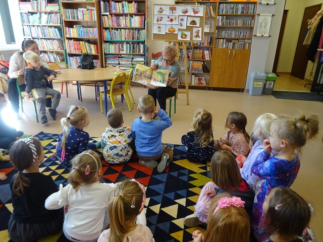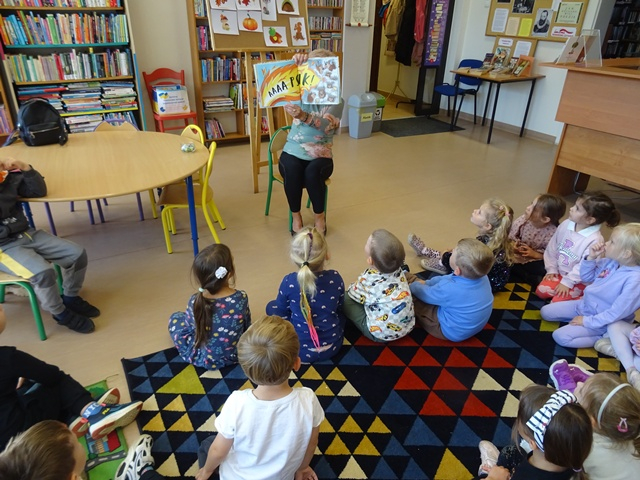 Z okazji zbliżającego się „Ogólnopolskiego Dnia Głośnego Czytania" bibliotekę odwiedziły "Gruszki" z Przedszkola Publicznego w Przecławiu. Wysłuchały opowiadania „Po prostu Ted” czyli ciepłą opowieść o tym, że warto być sobą i nie szukać akceptacji na siłę. Porozmawialiśmy też o pierwszych oznakach jesieni i o tym jak zwierzątka się do niej przygotowują. Na zakończenie przedszkolaki oglądały kolorowe książeczki.